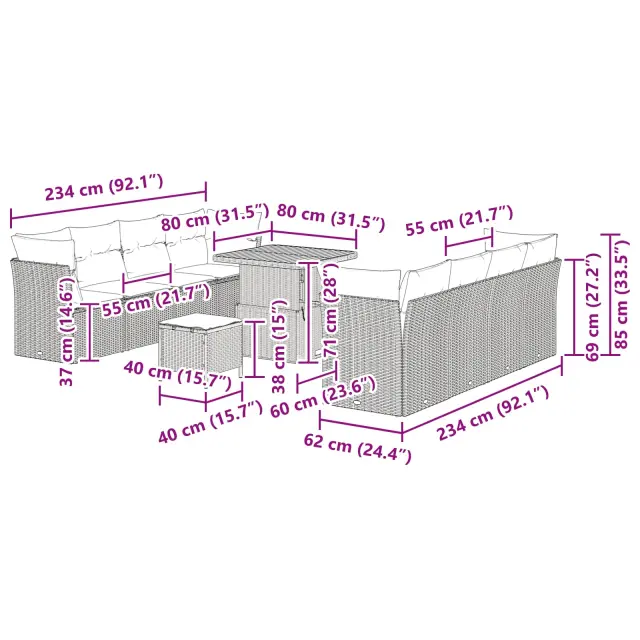 • Moderna eleganca: Modularna zasnova omogoča prilagodljivo shranjevanje, ki se prilagaja vašim potrebam. Enostavno ga je preurediti, ta set ponuja fleksibilnost, da se prilagodi različnim vrtom in potrebam po sedenju.