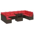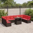 vidaXL Vrtna sedežna garnitura 11 pcs Rjava in rdeča poli ratan