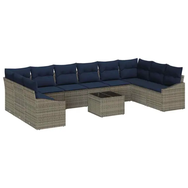 vidaXL Vrtna sedežna garnitura 11 pcs Siva in mornarsko modra