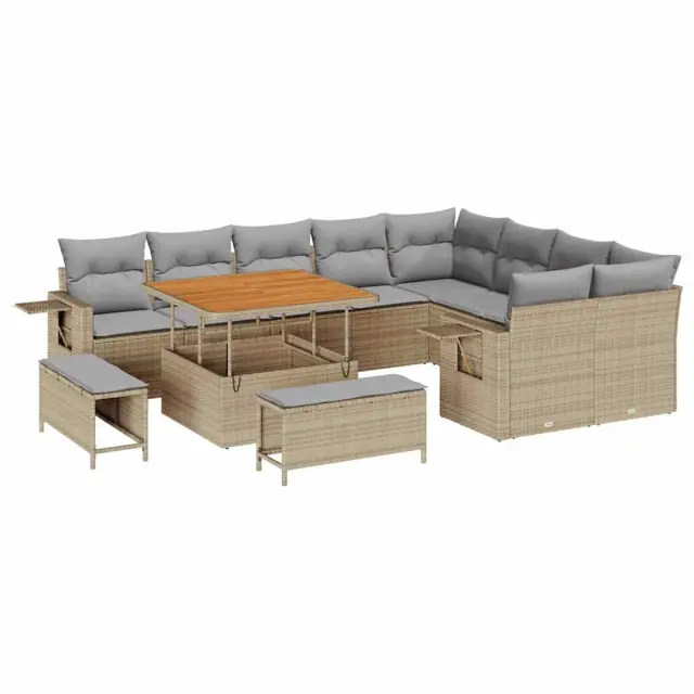 vidaXL Vrtna sedežna garnitura 12 pcs Bež poli ratan