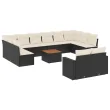 vidaXL Vrtna sedežna garnitura 13-delna z blazinami črn poli ratan