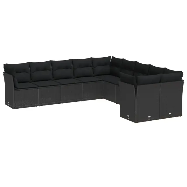 vidaXL Vrtna sedežna garnitura 13 pcs Črna poli ratan