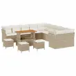 vidaXL Vrtna sedežna garnitura 14 pcs Bež in smetanova poli ratan