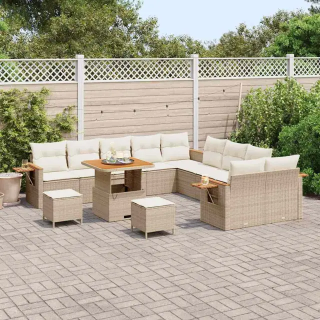 • Materiali: Modulni vrtni kavč je narejen iz vrhunskega poli ratana. Ta material je UV-odporen, kar pomeni, da bo ostal v dobrem stanju tudi na soncu. Dodatno je okrašen s trdim akacijevim lesom, ki je močan in vzdržljiv, kar vašemu pohištvu daje stabilnost.