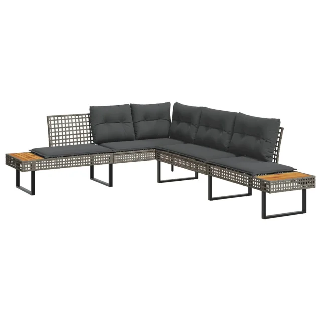vidaXL Vrtna sedežna garnitura 2-delna z blazinami poli ratan/akacija