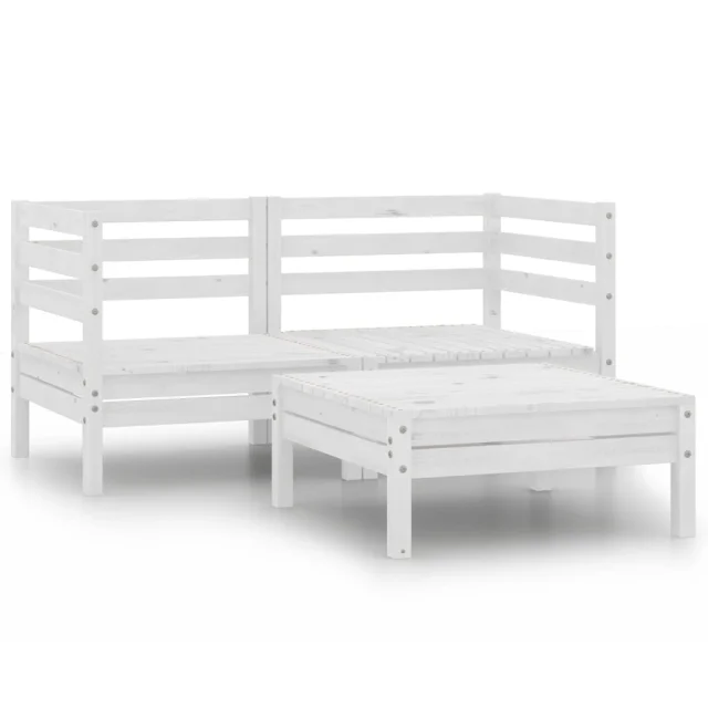 vidaXL Vrtna sedežna garnitura 3-delna bela trdna borovina