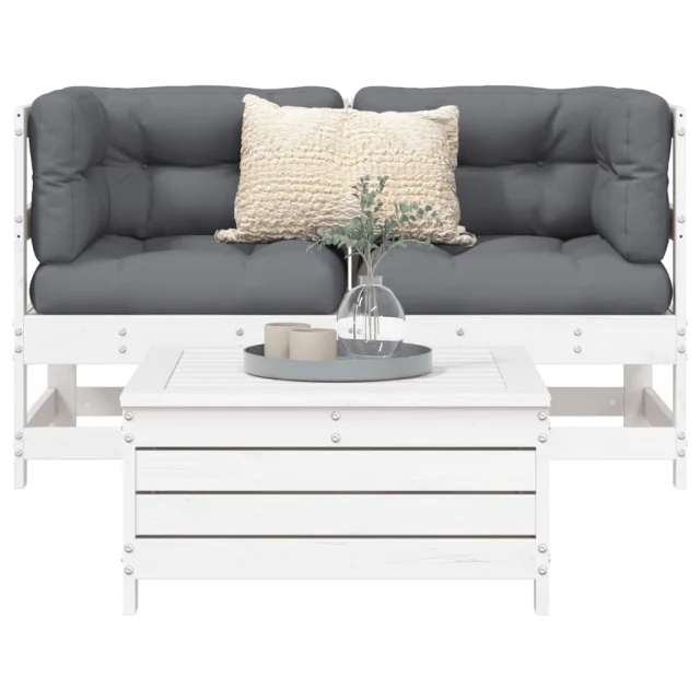 vidaXL Vrtna sedežna garnitura 3-delna bela trdna borovina