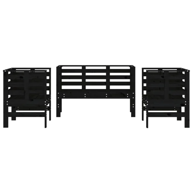 vidaXL Vrtna sedežna garnitura 3-delna črna trdna borovina