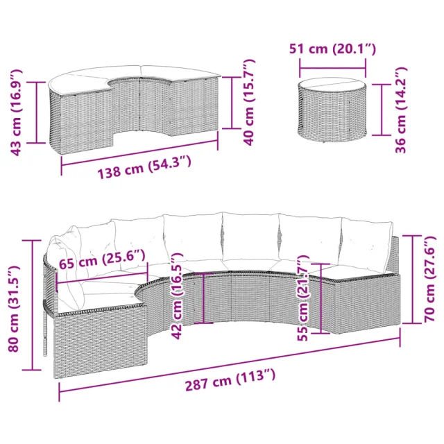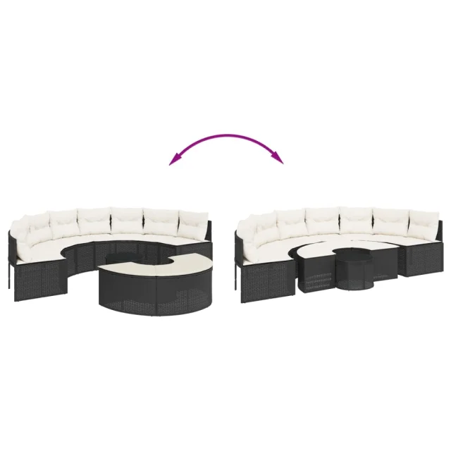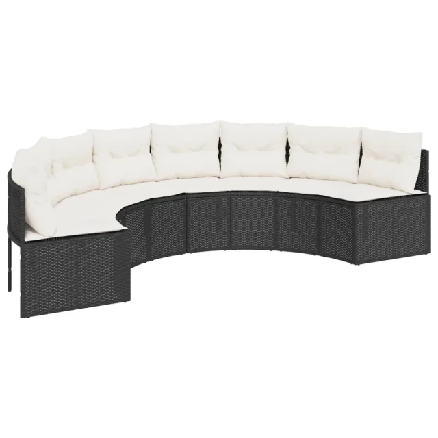 vidaXL Vrtna sedežna garnitura 3-delna polkrožna črn PE ratan