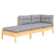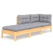 vidaXL Vrtna sedežna garnitura 3-delna s sivimi blazinami borovina