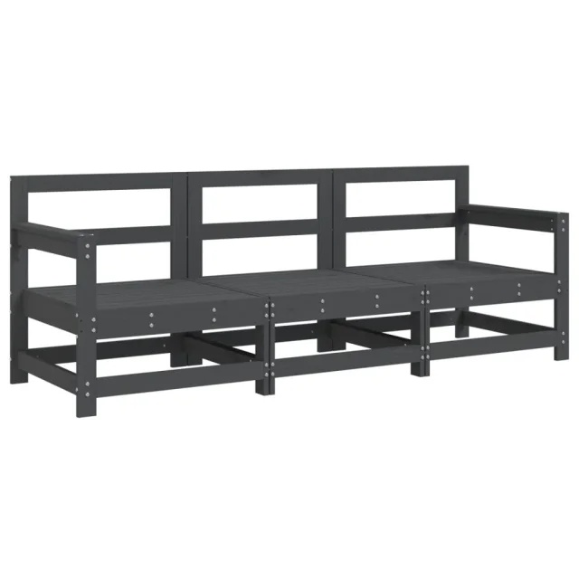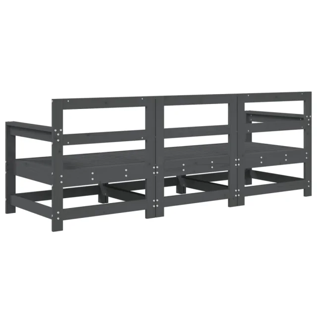 vidaXL Vrtna sedežna garnitura 3-delna siva trdna borovina