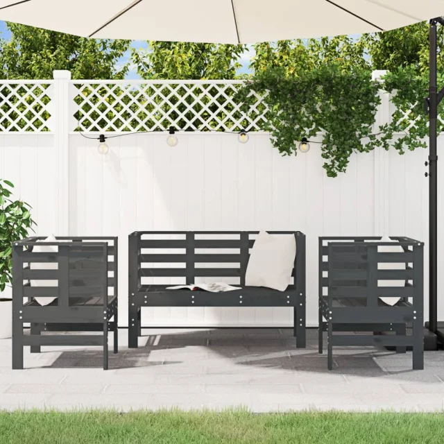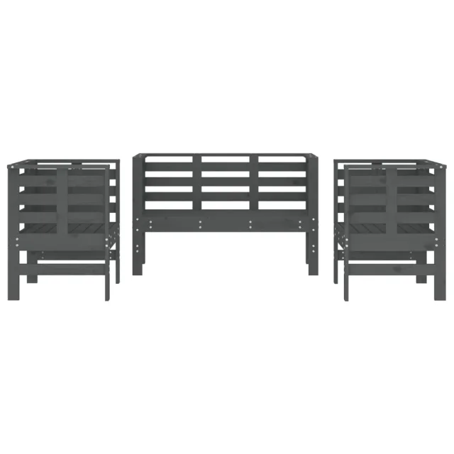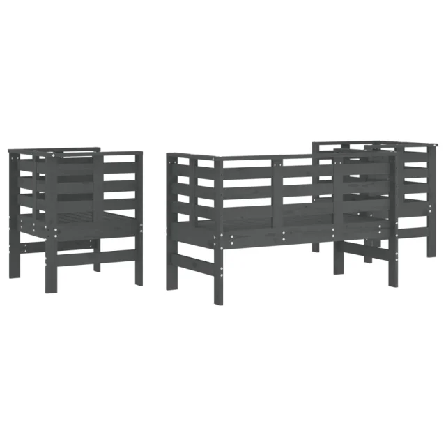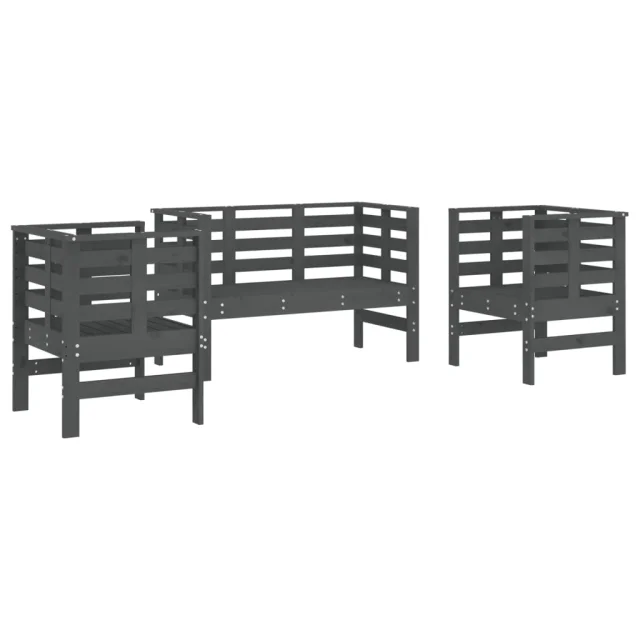 vidaXL Vrtna sedežna garnitura 3-delna siva trdna borovina