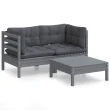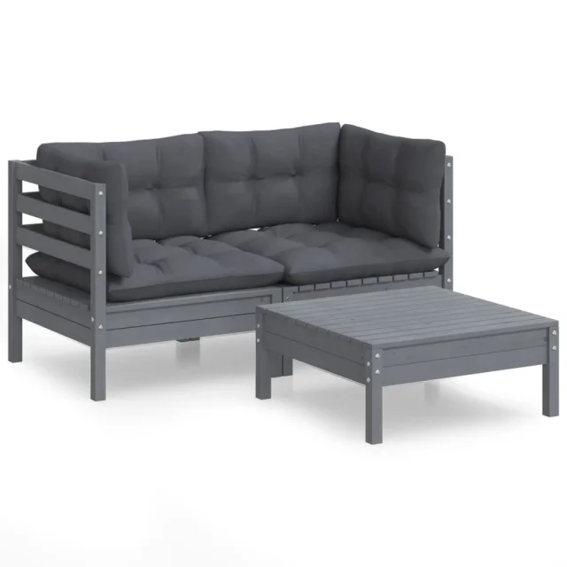 vidaXL Vrtna sedežna garnitura 3-delna z antracit blazinami borovina