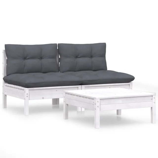 vidaXL Vrtna sedežna garnitura 3-delna z antracit blazinami borovina