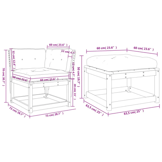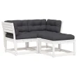 vidaXL Vrtna sedežna garnitura 3-delna z blazinami bela trdna borovina