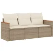 vidaXL Vrtna sedežna garnitura 3-delna z blazinami bež poli ratan