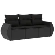 vidaXL Vrtna sedežna garnitura 3-delna z blazinami črn poli ratan