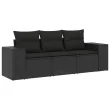 vidaXL Vrtna sedežna garnitura 3-delna z blazinami črn poli ratan