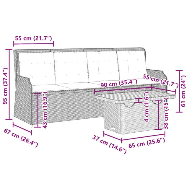 vidaXL Vrtna sedežna garnitura 3-delna z blazinami črn poli ratan