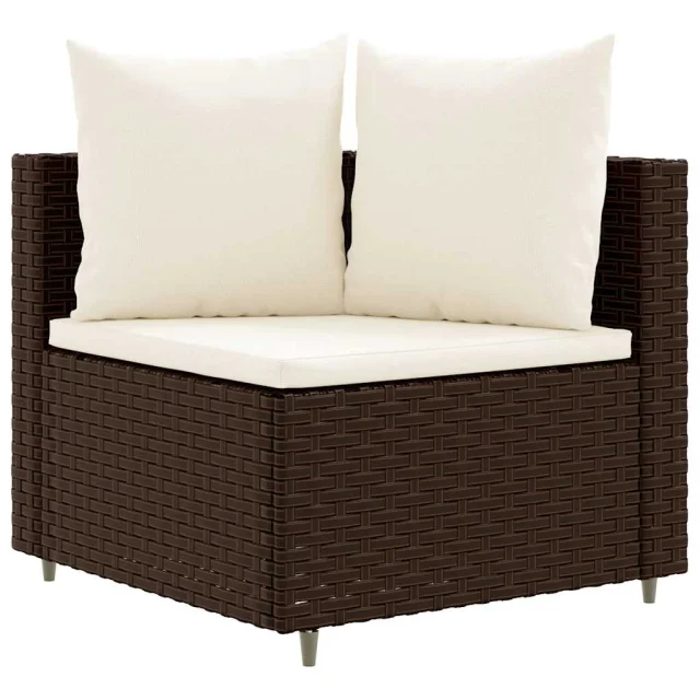 vidaXL Vrtna sedežna garnitura 3-delna z blazinami rjav poli ratan