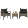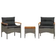 vidaXL Vrtna sedežna garnitura 3-delna z blazinami siv poli ratan