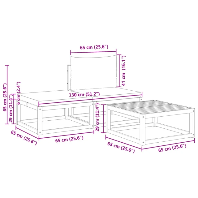 vidaXL Vrtna sedežna garnitura 3-delna z blazinami trden akacijev les