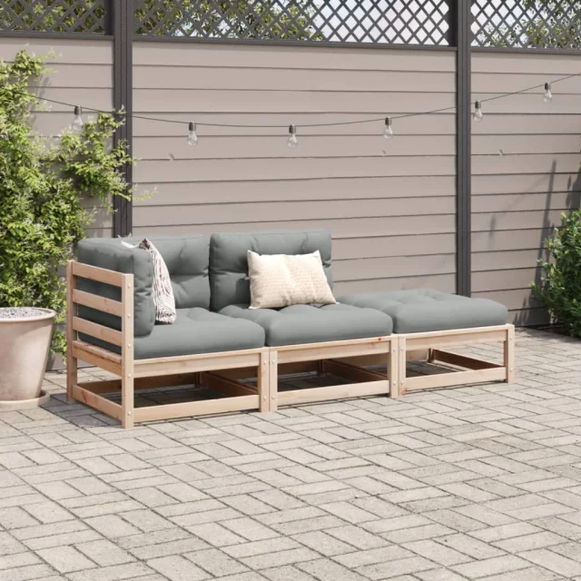 vidaXL Vrtna sedežna garnitura 3-delna z blazinami trdna borovina