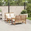 vidaXL Vrtna sedežna garnitura 3 pcs Naravna Trden tikov les