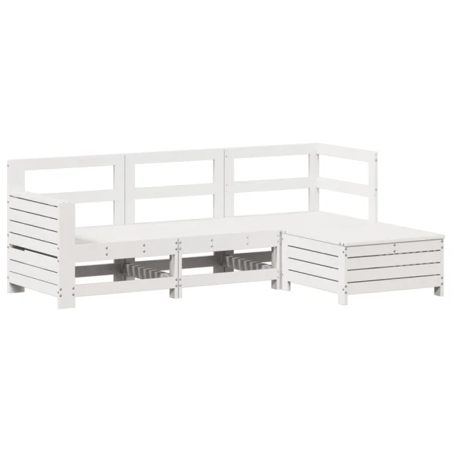 vidaXL Vrtna sedežna garnitura 4-delna bela trdna borovina