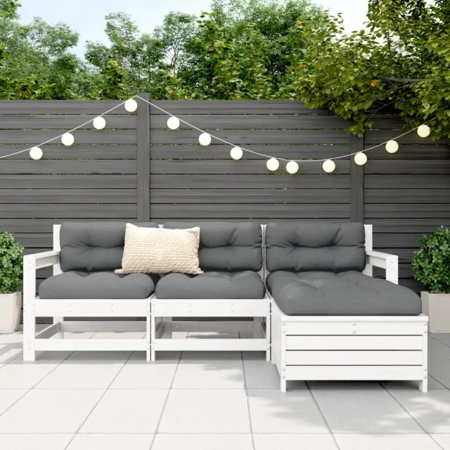 vidaXL Vrtna sedežna garnitura 4-delna bela trdna borovina