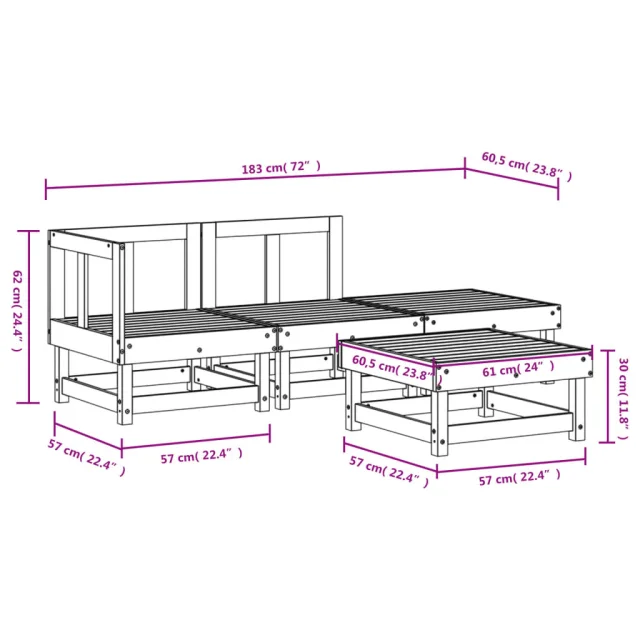 vidaXL Vrtna sedežna garnitura 4-delna trden les douglas