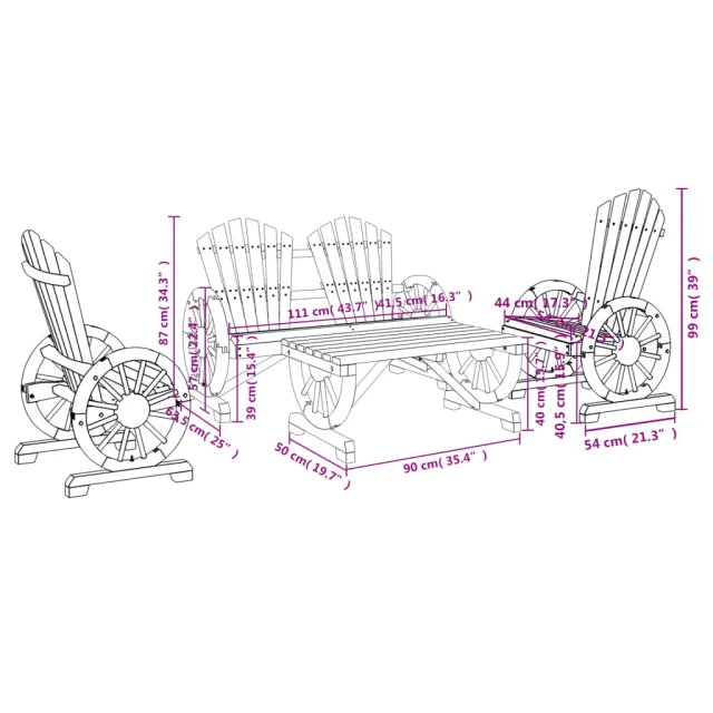 Uživajte v prostem času s to leseno vrtno garnituro v adirondack slogu.