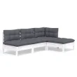 vidaXL Vrtna sedežna garnitura 4-delna z blazinami bela borovina