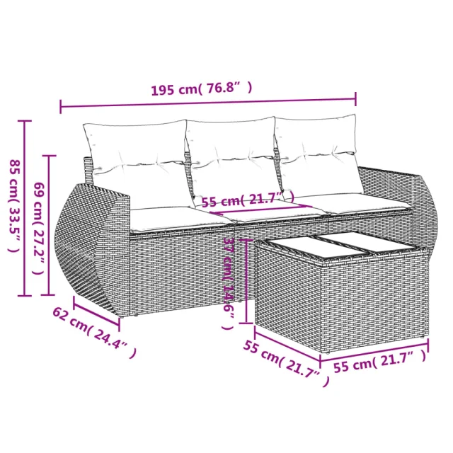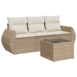 vidaXL Vrtna sedežna garnitura 4-delna z blazinami bež poli ratan