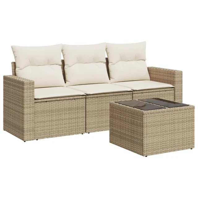 vidaXL Vrtna sedežna garnitura 4-delna z blazinami bež poli ratan