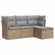 vidaXL Vrtna sedežna garnitura 4-delna z blazinami bež poli ratan