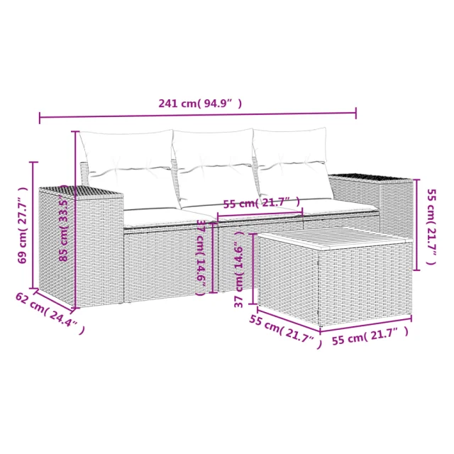 vidaXL Vrtna sedežna garnitura 4-delna z blazinami bež poli ratan