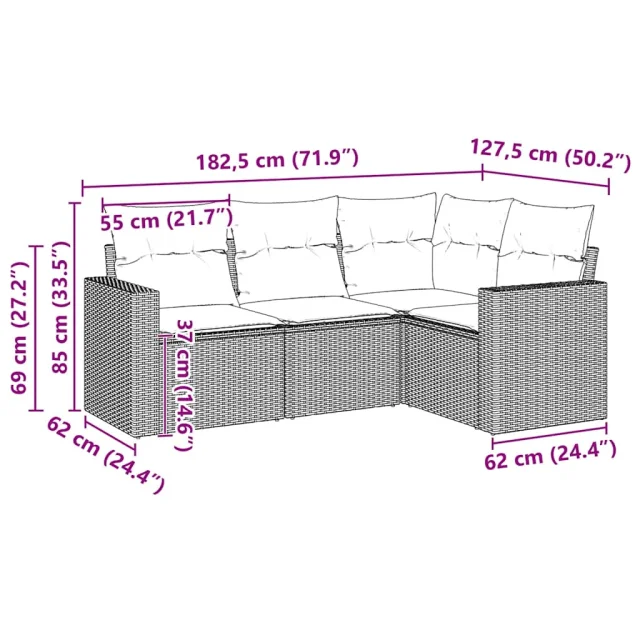Ta vrtna sedežna garnitura je popoln dodatek za vaše dvorišče, teraso ali verando, saj zagotavlja udoben in vabljiv prostor za klepet z družino in prijatelji ali preprosto za sprostitev in uživanje na prostem.