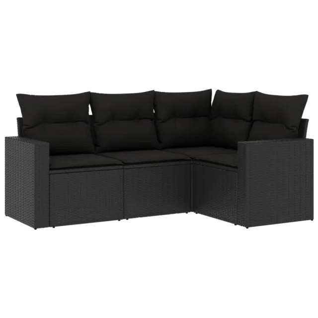 vidaXL Vrtna sedežna garnitura 4-delna z blazinami črna poli ratan