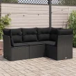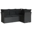 vidaXL Vrtna sedežna garnitura 4-delna z blazinami črna poli ratan