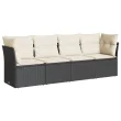 vidaXL Vrtna sedežna garnitura 4-delna z blazinami črna poli ratan