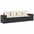 vidaXL Vrtna sedežna garnitura 4-delna z blazinami črna poli ratan