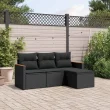 vidaXL Vrtna sedežna garnitura 4-delna z blazinami črna poli ratan
