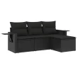 vidaXL Vrtna sedežna garnitura 4-delna z blazinami črna poli ratan
