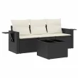 vidaXL Vrtna sedežna garnitura 4-delna z blazinami črna poli ratan