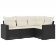 vidaXL Vrtna sedežna garnitura 4-delna z blazinami črna poli ratan