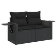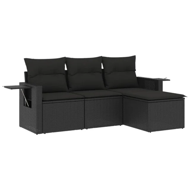 vidaXL Vrtna sedežna garnitura 4-delna z blazinami črna poli ratan