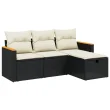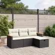vidaXL Vrtna sedežna garnitura 4-delna z blazinami črna poli ratan