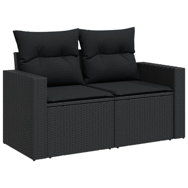 vidaXL Vrtna sedežna garnitura 4-delna z blazinami črna poli ratan