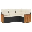 vidaXL Vrtna sedežna garnitura 4-delna z blazinami črna poli ratan